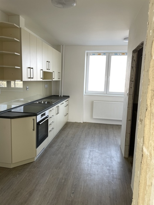 Rekonstrukce interiéru RD s novou kuchyňskou linkou a lakovaným sklem