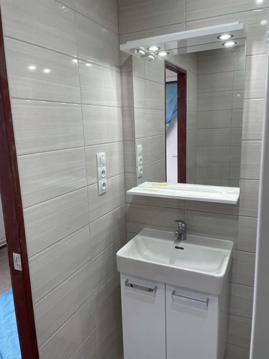 V panelovém domě ve Velkém Meziříčí jsme prováděli rekonstrukci bytového jádra. Původní umakartové jádro bylo odstraněno a bylo vyzděno nové bytové jádro. V koupelně je osazen sprchový kout Ravak 120x80 (s obdélníkovou vaničkou z litého mramoru). Umyvadlo s nábytkem Krajcar. Vodovodní baterie od Novaservisu. Toaleta je osazena kombi WC a rohovým umývátkem. Součástí rekonstrukce byla nová elektroinstalace bytového jádra a kuchyně včetně výměny bytového rozvaděče, nová vodoinstalace a odpady.