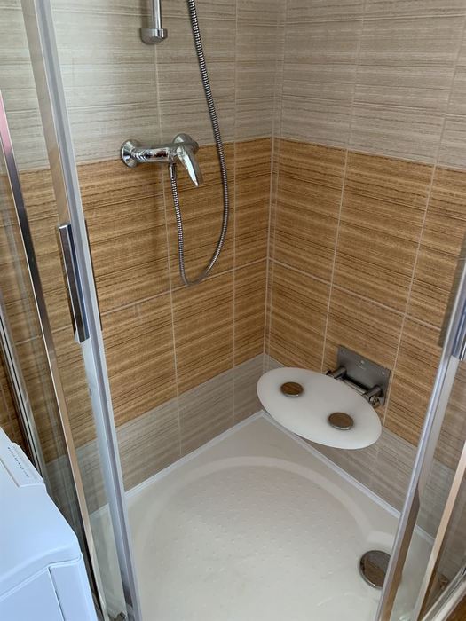 V Náměšti nad Oslavou jsme prováděli částečnou rekonstrukci koupelny, WC a v interiéru bytu jsme montovali nové deskové radiátory do všech pokojů. Také jsme prováděli dodávku a montáž nového kondenzačního plynového kotle Therm. Původní koupelna s vanou byla kompletně odstraněna. Byl nainstalován sprchový kout s vaničkou z litého mramoru, moderní umyvadlo od firmy Krajcar a vodovodní baterie od Novaservisu. Pod obklad Kilimi byly nově vyrovnány stěny. Kompletní nové odpady a vodoinstalace koupelny. Na toaletu jsme namontovali nové kombi WC JIKA. Tato rekonstrukce byla prováděna z důvodu částečné invalidity investora.
