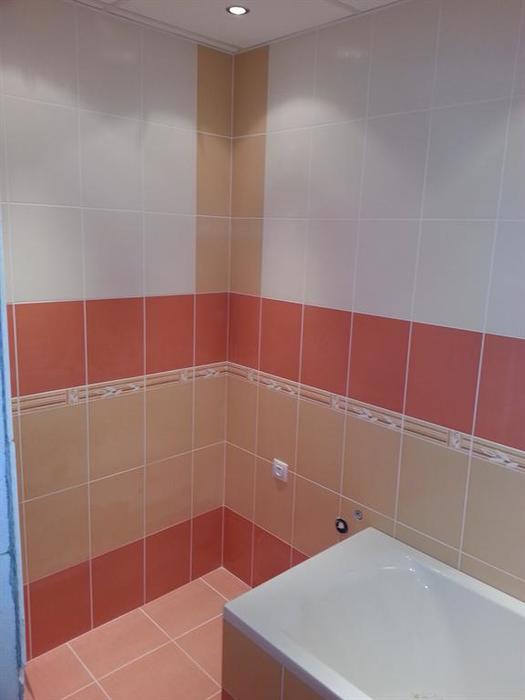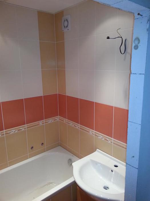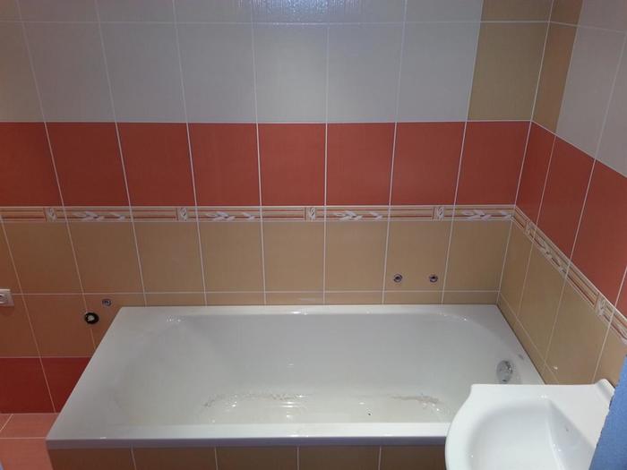 Rekonstrukce bytového jádra v cihlovém činžovním domě. Tato rekonstrukce koupelny proběhla v Náměšti nad Oslavou. Byt o velikosti 2+1 byl celkově zrekonstruován a byly vyměněny i obložky zárubní a bytové dveře. Na obložení byl použit obklad Tango.