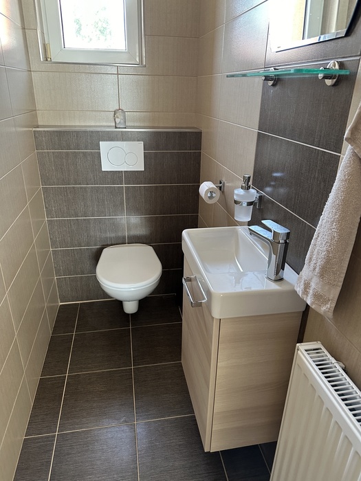 V rodinném domě v Rokytnici nad Rodytnou (2. nadzemní podlaží) jsme prováděli rekonstrukci koupelny a wc. Původní koupela i wc jsme vybourali. V koupelna byla přestavěna tak, aby v nové koupelně byl sprchový kout s walk-in stěnou. Do wc byl osazen závěsný klozet s konstrukcí Geberit.
