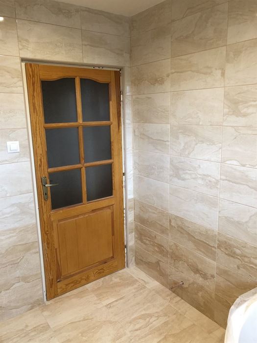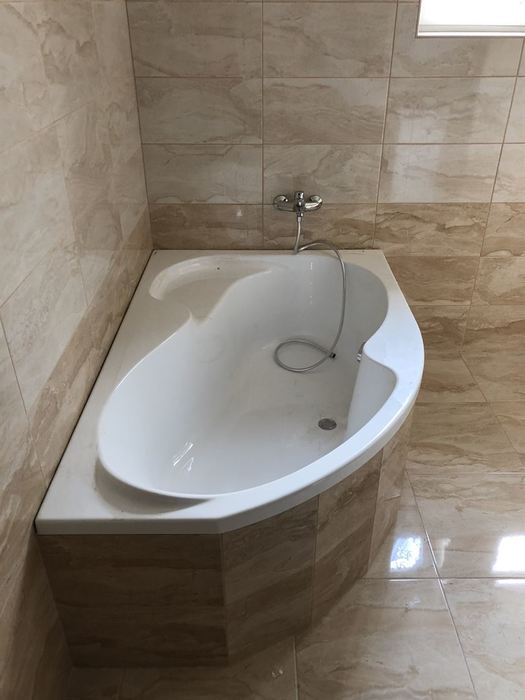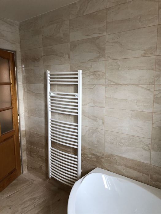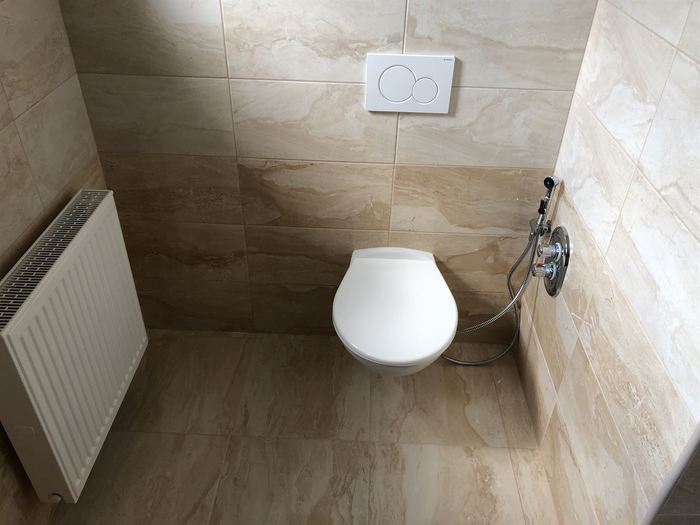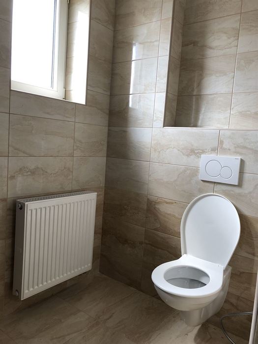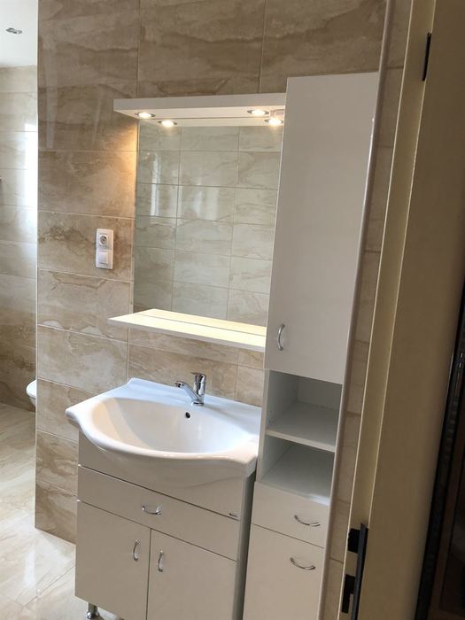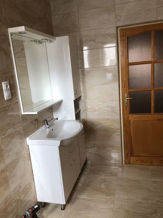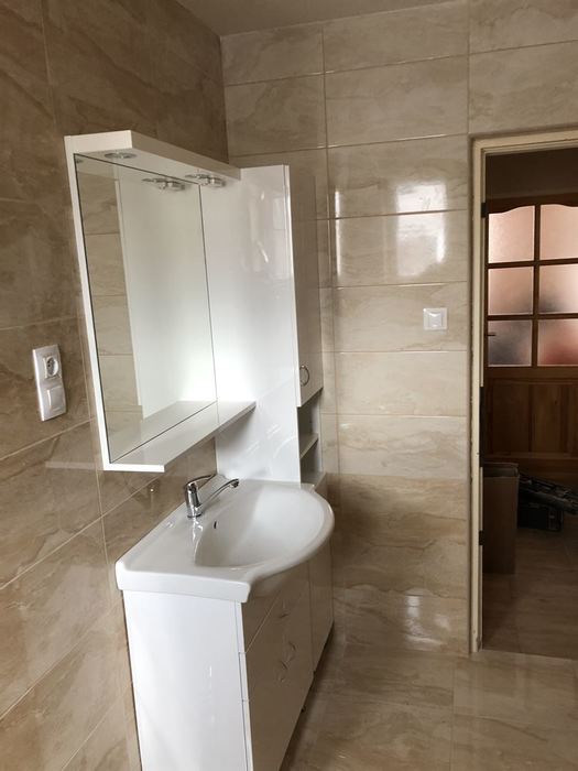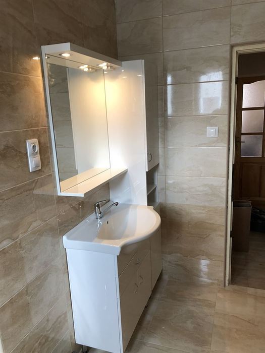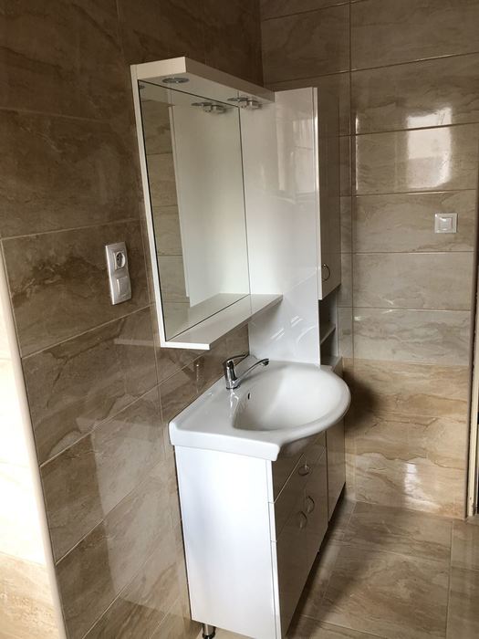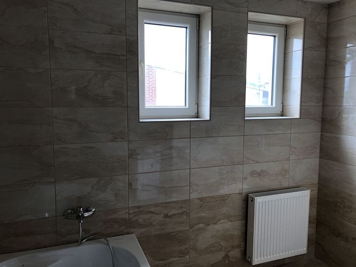 Rekonstrukce koupelny na klíč v Jaroměřicích nad Rokytnou. Původní koupelna a WC byly odstraněny. WC bylo přepaženo a spojeno s koupenou. Přepažením WC vznikla šatna. Do nové koupelny byla nainstalována vano Rosa, WC konstrukce Geberit, koupelnový nábytek Keramia a baterie Novaservis. V rámci rekonstrukce jsme prováděli úpravu elektroinstalace, nová vodoinstalace a úpravy topení - nový radiátor, topný žebřík, rozvody měď. Zednické a obkladačské práce, nové obklady. Snížení stropu sádrokartonem.