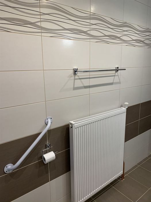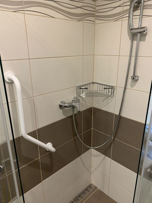 V Markvarticích u Třebíče jsme prováděli pro našeho zákazníka, který je invalida rekonstrukci koupelny na klíč. Nový sprchový kout je bezbariérový a se sprchovou skládací zástěnou ve skleněném provedení (tento sprchový kout je namontován proto, aby bylo více místa při vstupu do koutu). Koupelna je osazena invalidními prvky.