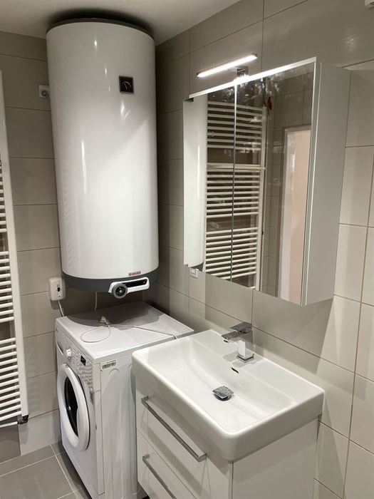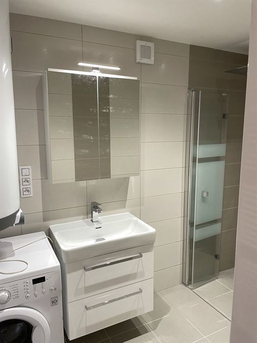 V rámci rekonstrukce RD jsme prováděli rekonstrukci koupelny. Původní koupelna byla odstraněna a na jejím místě byla postavena nová koupelna se sprchovým koutem. Součástí rekonstrukce byly: demoliční, zednické, obkladačské, sádrokartonářské práce. Nová vodoinstalace a elektroinstalace. Kompletní nové vybavení koupelny.