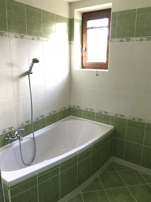 Ve starším rodinném domě jsme prováděli rekonstrukci koupelny. Původní koupelna byla odstraněna a nová koupelna je postavena na půdorysu původní koupelny a je zvětšena o vybouranou komoru. Součástí rekonstrukce je i nové podlahové topení v koupelně. Nový sprchový kout s odtokovým žlabem, hlavovou sprchou a sprchovými dveřmi v provedení lítačky. Nová plastová vana od Santechu. WC je namontováno od Geberitu v provedení zazděné konstrukce a závěsného WC.