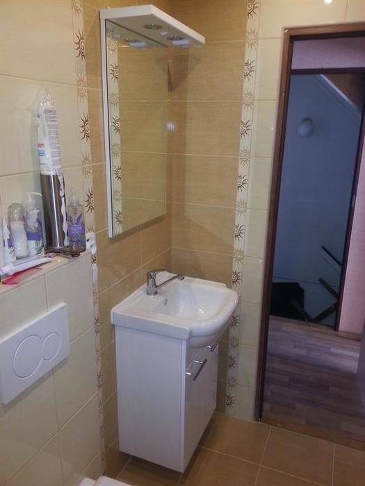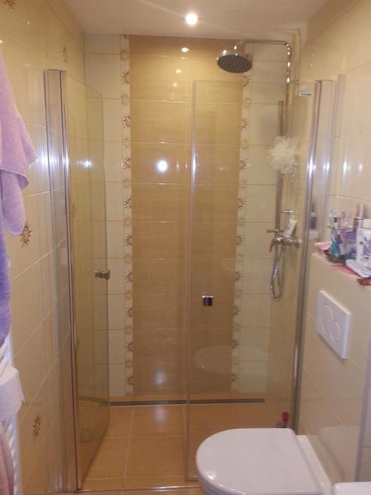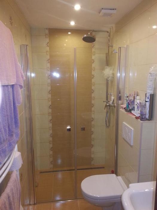 Prováděli jsme kompletní rekonstrukci koupelny v 1NP řadového RD - Okál v Třebíči. Stávající podlaha byla vybetonována. Obklady jsme prováděli na původní okálové dřevotřískové stěny. Ve sprchovém koutě jsme tekutou lepenkou vyizolovali stěny a podlahu. Obklad Soleo jsme nejdřív zákazníkovi nakreslili ve 3D programu a podle toho jsme i stěny obložili.