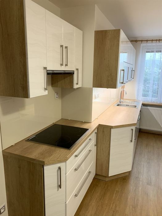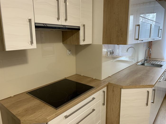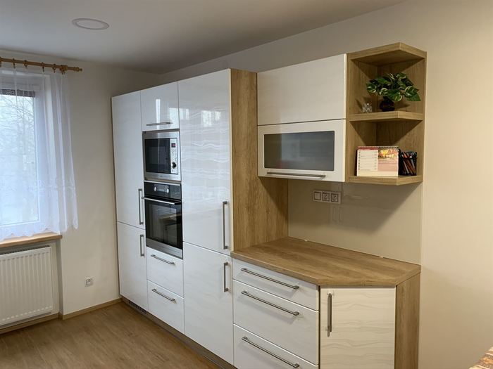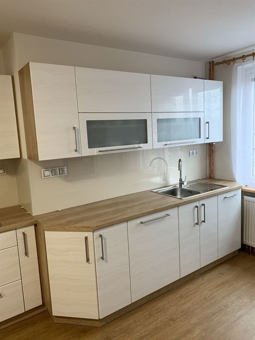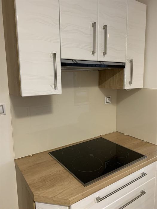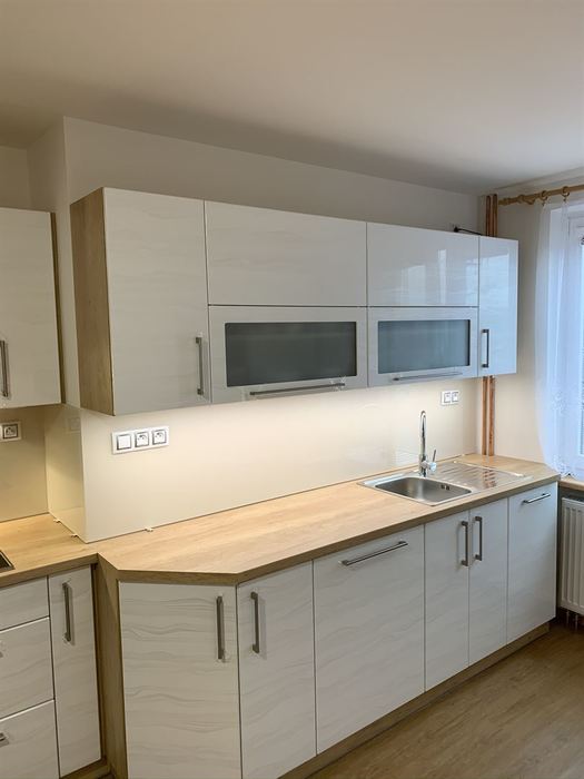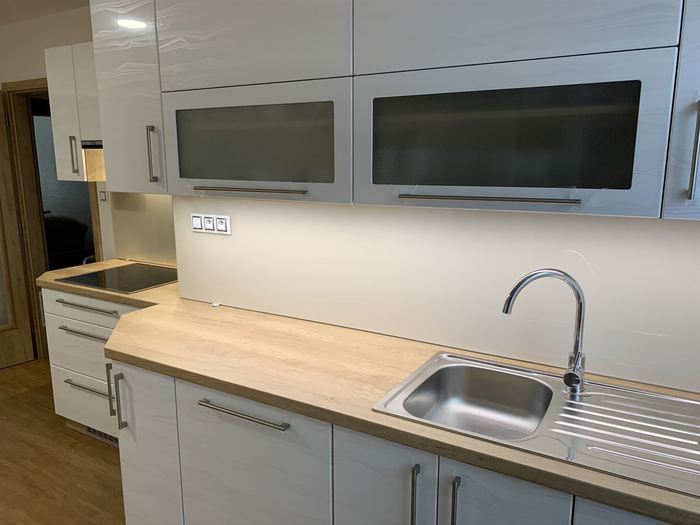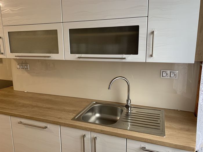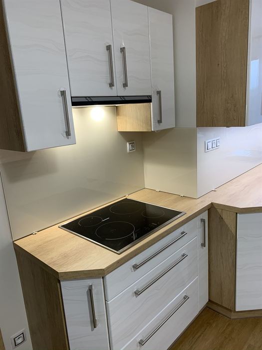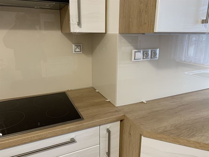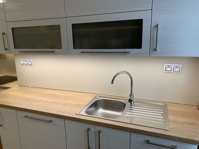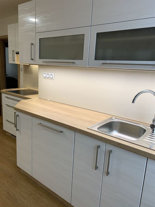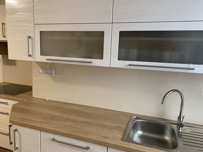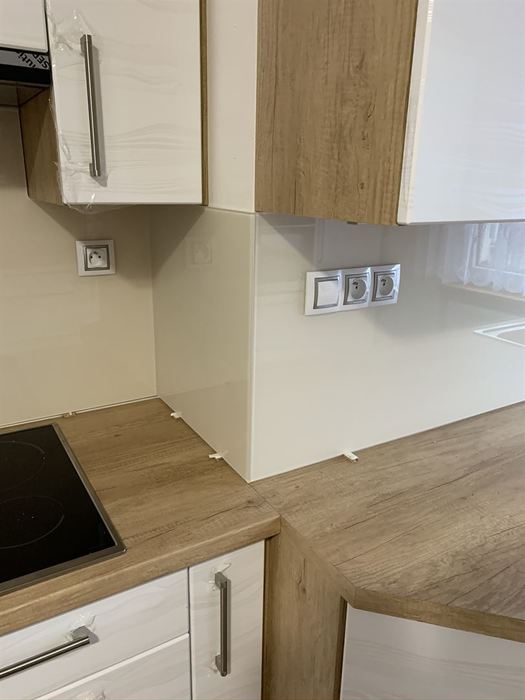 V rámci rekonstrukce interiéru rodinného domu jsme prováděli montáž lakovaného skla do nově nainstalované kuchyňské linky. Provedli jsme zaměření lakovaného skla pro výrobu a následnou instalaci. Sklo je kalené a je o síle 6mm. Součástí rekonstrukce interiéru byly veškeré zednické, sádrokartonářské, elektroinstalatérské, vodoinstalatérské a podlahářské práce.