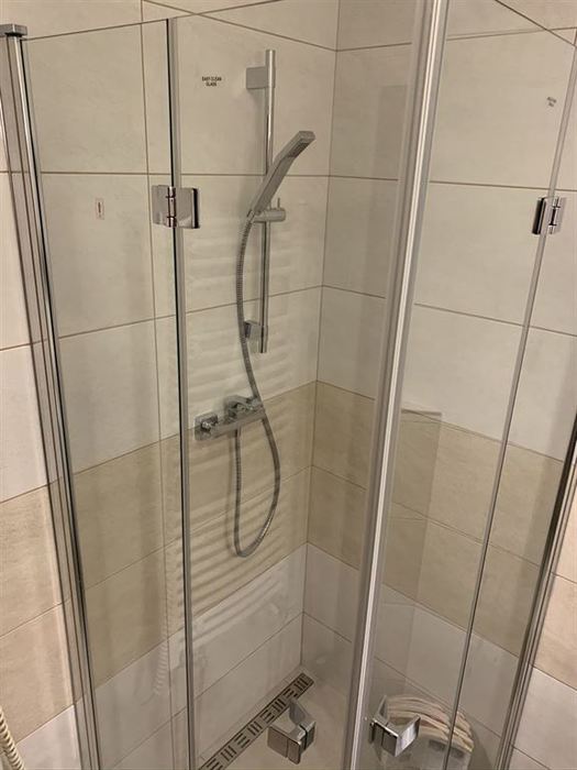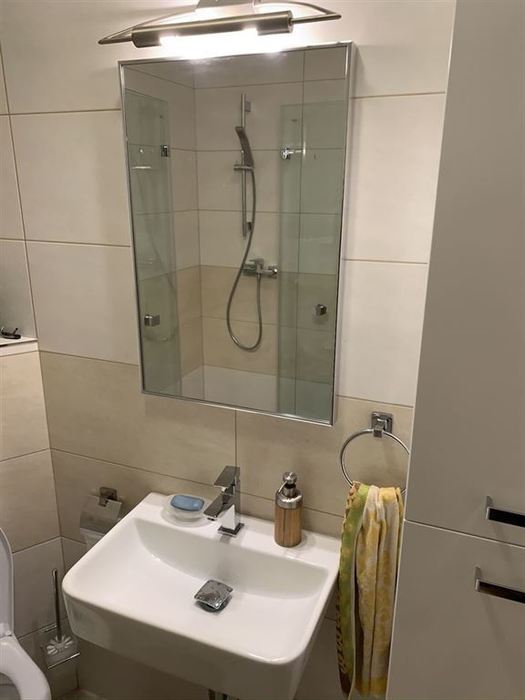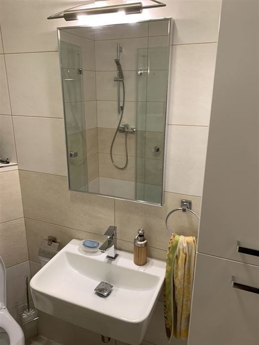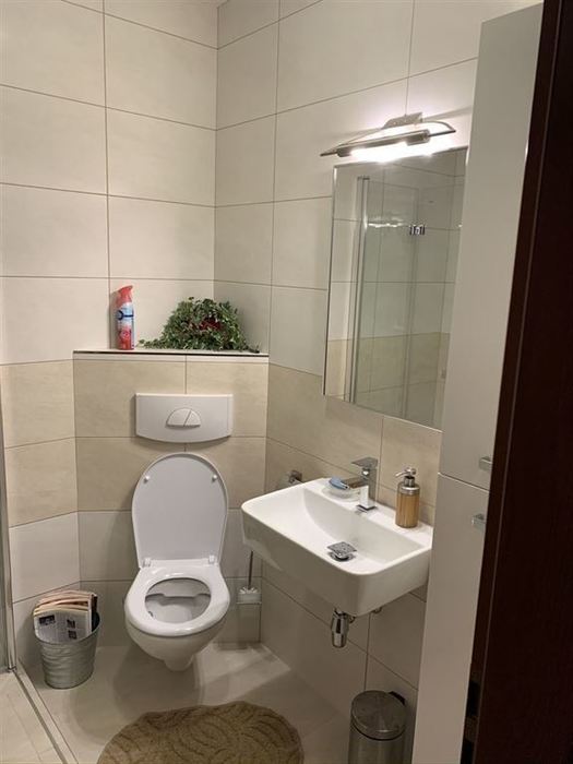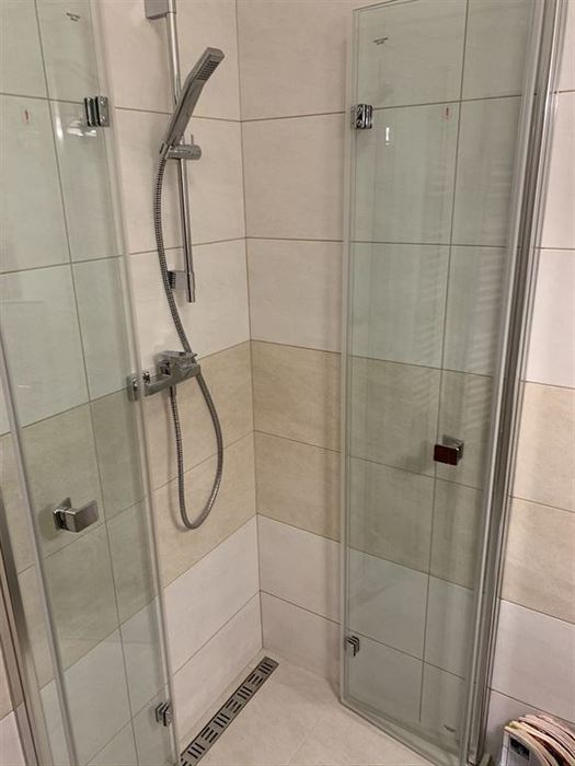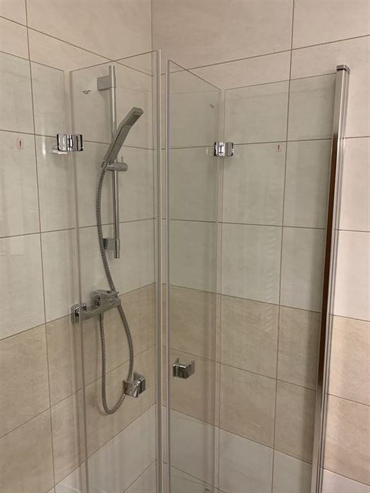 V 1. nadzemním podlaží rodinného řadového domu jsme prováděli renovaci koupelny. Původní instalace byly zachovány pouze jsme nahradili sprchovou vaničku zděnou vaničkou s odtokovým žlabem. Z důvodů malého prostou mezi sprchovým koutem a klozetem jsme osadili skládací pantové sprchové dveře. Zachována byla i konstrukce závěsného WC s tlačítkem včetně původní obezdívky, na kterou jsme osadili nový závěsný klozet se splachováním RIMLES a sedátkem SOFTCLOSE. Bylo osazeno nové moderní umyvadlo a koupelnový nábytek od firmy Krajcar. Koupelna byla osazena novými vodovodními bateriemi od firmy Novaservis. Koupelna byla nově obložena obkladem od Paradyze.