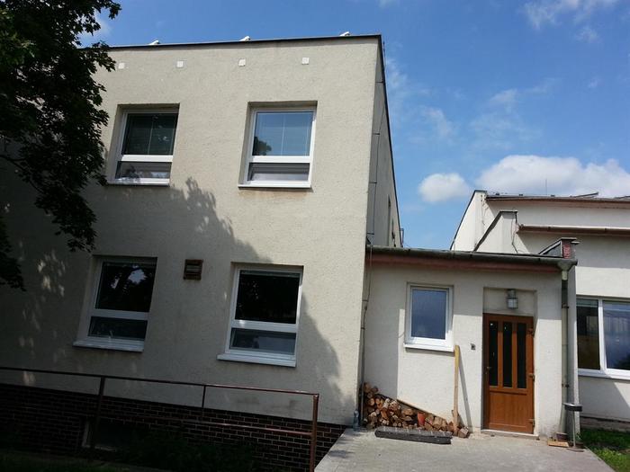 V budivě Obecního úřadu Dolní Vilémovice, kde se nachází i společenský sál, jsme prováděli kompletní výměnu platových oken a dveří. Okenní profil od firmy Rehau je velice kvalitní materiál jak provedením tak moderním vzhledem. Okna jsou zasklena od výrobce Pilkington. Okna a dveře jsou osazeny kováním ROTO. Na dveřích je namontováno bezpečnostní kování. Okna na sále jsou osazeny roletami. Tato zakázka byla prováděna od A až po Z. Původní oka jsme vybourali, nové plastové okna jsme zednicky zapravili a provedli jsme jak montáž vnitřních plastových parapetů tak osazení venkovních tažených hliníkových parapetů.