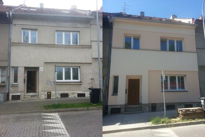 Pro zákazníka v Třebíči jsme provedli zateplení a nátěr fasády rodinného domu. Nátěr domu byl provedený barevně ve dvou barvách přesně podle zadání zákazníka a aby dům i po rekonstrukci zapadl designem do stylu ulice. Současně fasáda rodinného domu je po zateplení a nátěru výrazná a působí moderním dojmem.