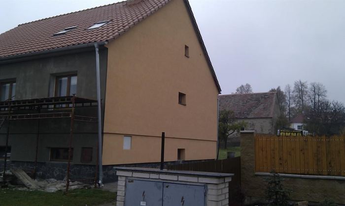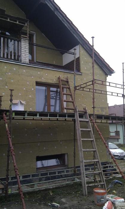 Zateplení fasády minerální vatou včetně provedení omítek na RD Budíkovice.