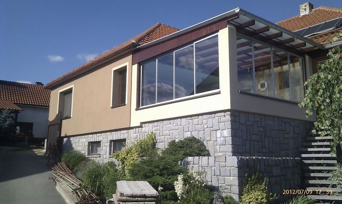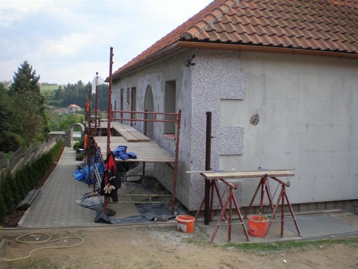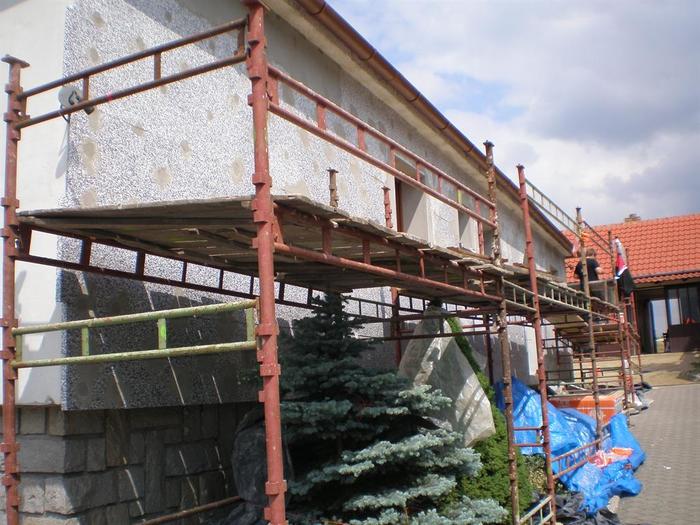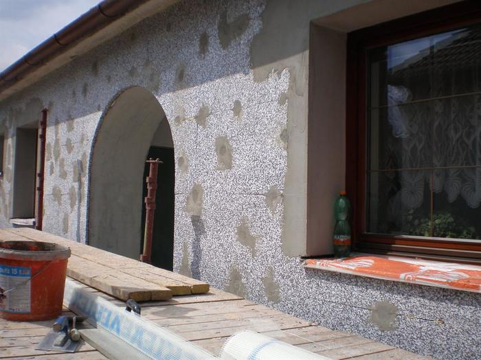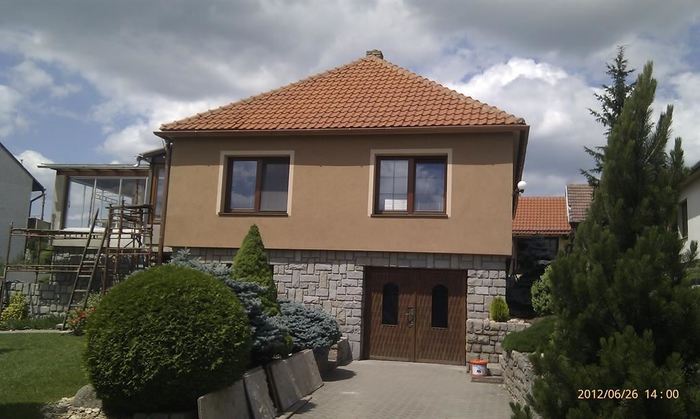 K zateplení tohoto RD byl použity nově vyvinuté fasádní izolační desky Capatech Dalmatin. Tyto desky mají vyšší účinnost, lepší akustické vlastnosti. Fasádní omítkovina je použita od firmy Caparol. Dvoubarevné provedení zvýrazňuje okna a vstupní prostory domu. Velikost zrna omítkoviny je 1,5. Tuto fasádu na klíč jsme prováděli z části jako opravu po jiné firmě, která musela zakázku, z důvodů nespokojenosti zákazníka a mnoha chyb, ukončit. Provedené stěrkování a podklady byly tak křivé, že jsme museli celou fasádu přelepit novými deskami Dalmatin.