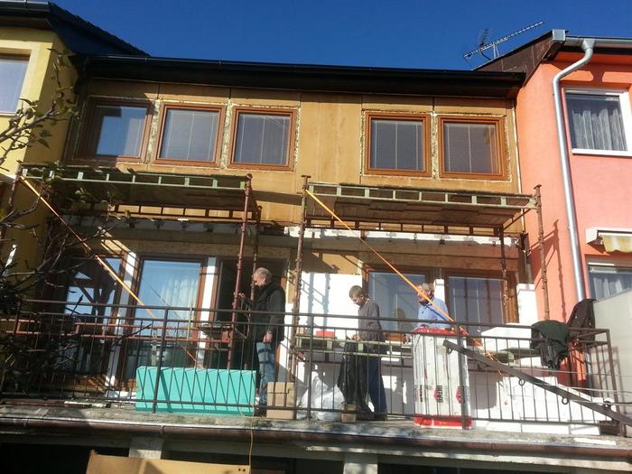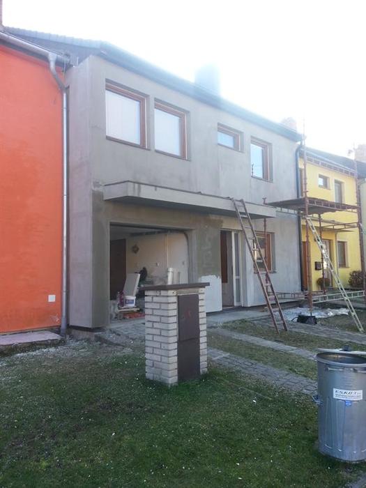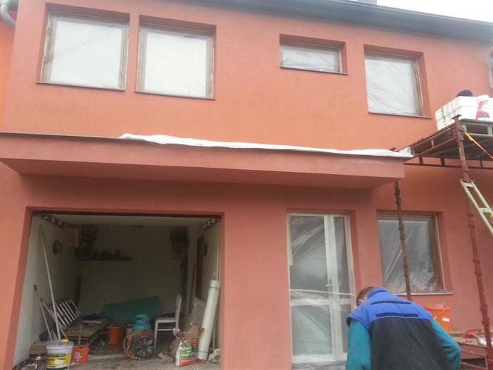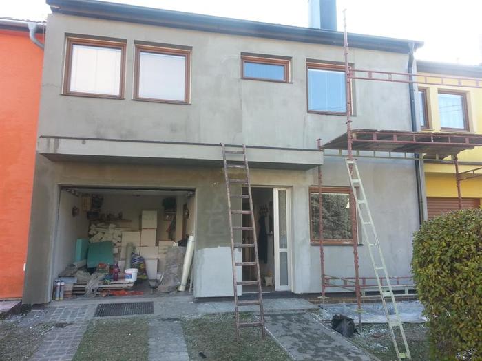 Prováděli jsme zateplení řadového rodinného domu v Třebíči. Okálový ŘRD jsme museli upravit před započetím samotného zateplení. Proběhla demontáž původních vrchních desek a oprava stávají dřevodeskového povrchu. Montovali jsme pod zateplení trám pro možnou budoucí montáž Markýzy. Zateplení je provedeno polystyreném o síle 14 cm, lepení desek je provedeno PU pěnou. Fasádní omítkovina je carbonová, zrno 1,5 točená od firmy Caparol